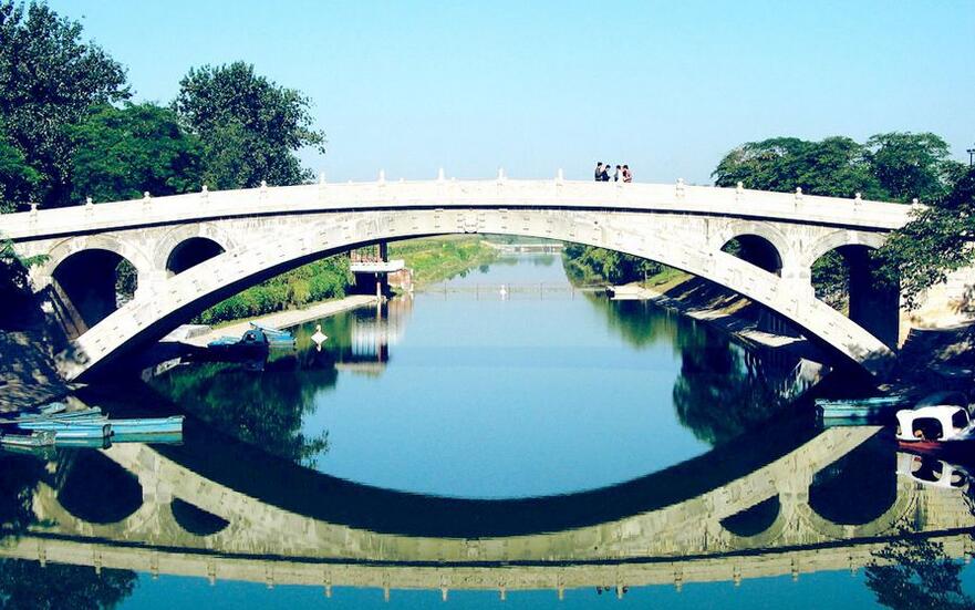趙州橋原名安濟(jì)橋,俗稱(chēng)大石橋,建于隋煬帝大業(yè)年間(595~605年),至今已有1400年的歷史,是當(dāng)今世界上最古老的石拱橋。石拱橋是用石塊拼砌成彎曲的拱作為橋身,上面修成平坦的橋面,以行車(chē)走人。而趙州橋的特點(diǎn)是“敞肩式”,即在大拱的兩肩上再辟小拱,是石拱橋結(jié)構(gòu)中最先進(jìn)的一種。她是世界上現(xiàn)存年代最久、單孔跨度最大、保存最完整的一座敞肩型石拱橋,被世人公認(rèn)為“天下第一橋”。趙州橋正名安濟(jì)橋,俗稱(chēng)大石橋。其設(shè)計(jì)者是隋朝匠師李春。趙州橋是正常的交通運(yùn)輸橋,它的橋身弧線優(yōu)美,遠(yuǎn)眺猶如蒼龍飛駕,又似長(zhǎng)虹飲澗。尤其具有藝術(shù)特色的是欄板以及望栓上的浮雕。充分顯示了隋代矯健、俊逸、渾厚、嚴(yán)整的石雕風(fēng)貌。整個(gè)大橋堪稱(chēng)一件精美的藝術(shù)珍品,稱(chēng)得上是隋唐時(shí)代石雕藝術(shù)的精品。